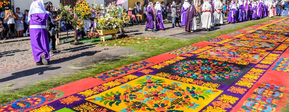 Antigua Guatemala experiences a surge in visitors during Holy Week, marking it as a peak season. To ensure a seamless experience, we recommend booking accommodations well in advance, as rooms tend to fill up rapidly. Secure your stay and confirm details with your chosen hotel or guest house. For those driving into Antigua Guatemala, be prepared to witness the city's streets and avenues transformed into vibrant displays with the famous handmade rugs crafted by locals. While these artistic expressions add to the city's charm, they may also contribute to traffic congestion.